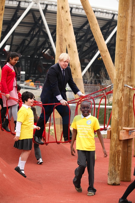 Ksiaze Harry i Boris Johnson spotkali sie z dziecmi w Parku Olimpijskim Queen Elizabeth