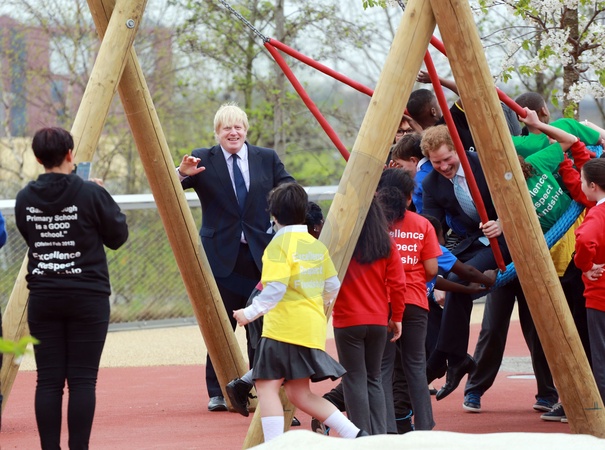 Ksiaze Harry i Boris Johnson spotkali sie z dziecmi w Parku Olimpijskim Queen Elizabeth