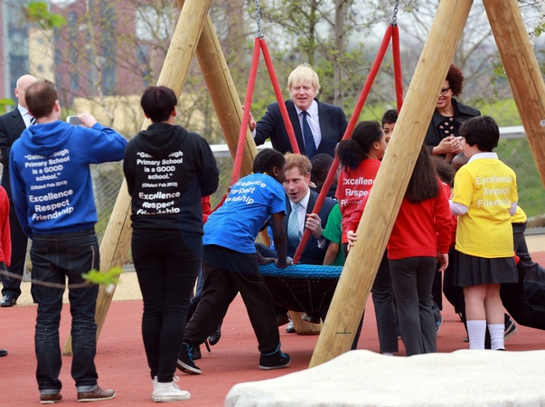 Ksiaze Harry i Boris Johnson spotkali sie z dziecmi w Parku Olimpijskim Queen Elizabeth