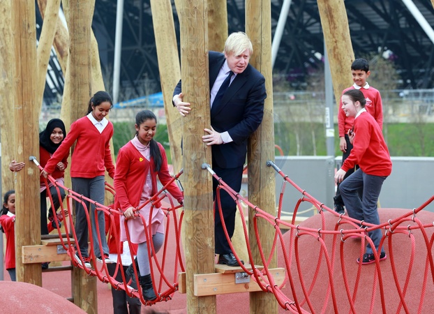 Ksiaze Harry i Boris Johnson spotkali sie z dziecmi w Parku Olimpijskim Queen Elizabeth
