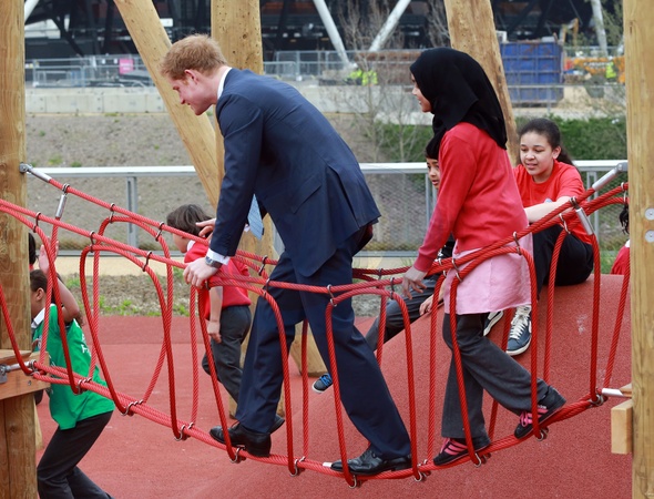 Ksiaze Harry i Boris Johnson spotkali sie z dziecmi w Parku Olimpijskim Queen Elizabeth