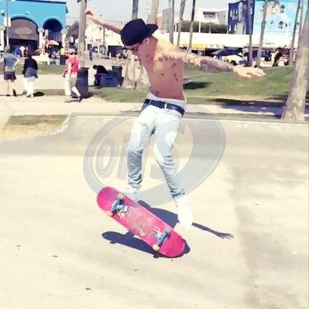 Nowosci z Twittera - Justin Bieber bez koszulki na deskorolce