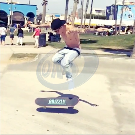 Nowosci z Twittera - Justin Bieber bez koszulki na deskorolce