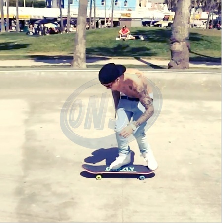Nowosci z Twittera - Justin Bieber bez koszulki na deskorolce