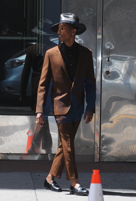 Pharrell Williams w nowym kapeluszu i za krotkich spodniach