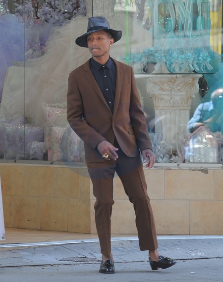 Pharrell Williams w nowym kapeluszu i za krotkich spodniach