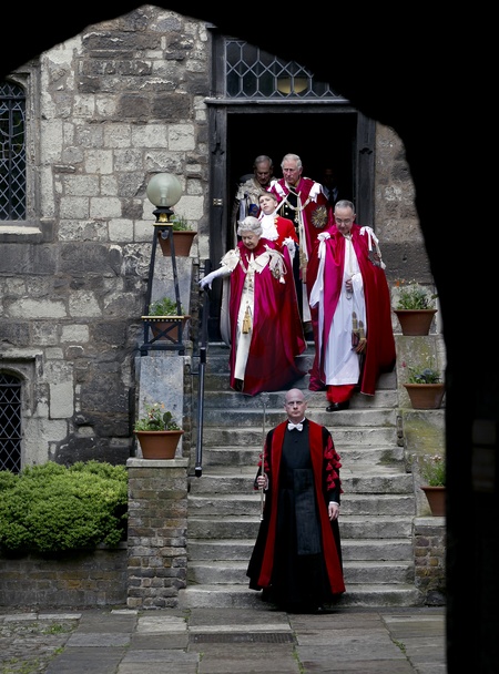 Krolowa Elzbieta i Ksiaze Karol przybyli do Zakonu Bath Service w Londynie