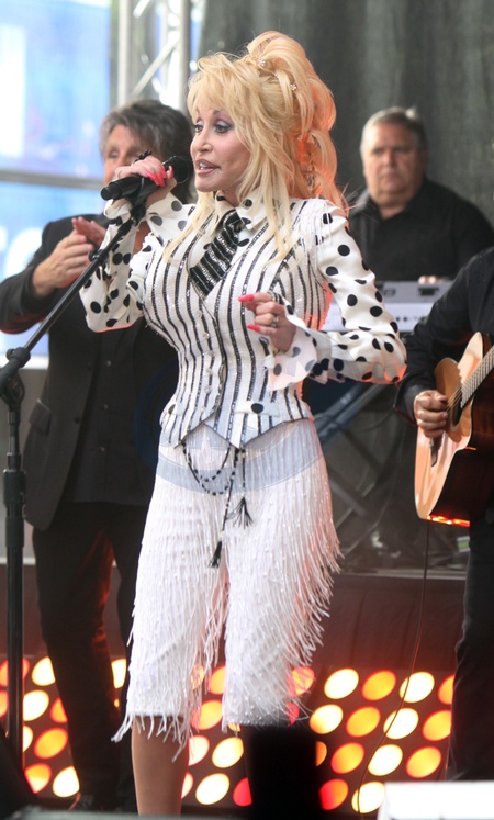 Dolly Parton w swingujacych spodniach zaspiewala w NBC's Today Show, Nowy Jork