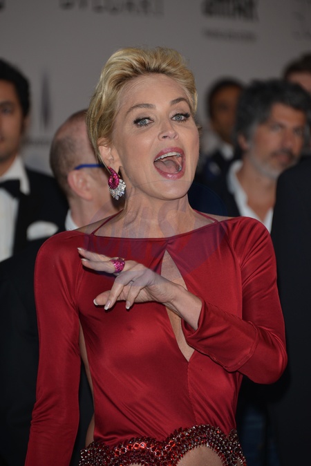 Cannes 2014 - Sharon Stone BEZ STANIKA podczas AMFAR