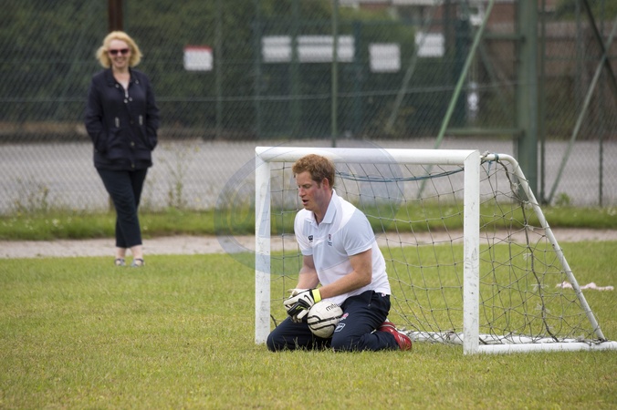 Ksiaze Harry gra z dziecmi w pilke nozna i rugby