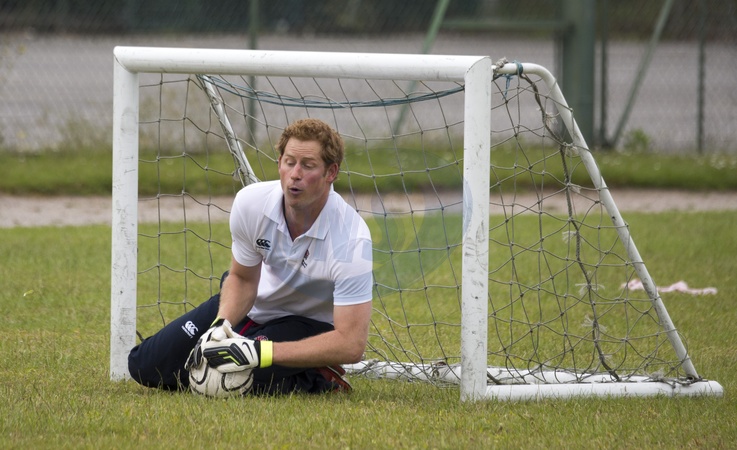 Ksiaze Harry gra z dziecmi w pilke nozna i rugby