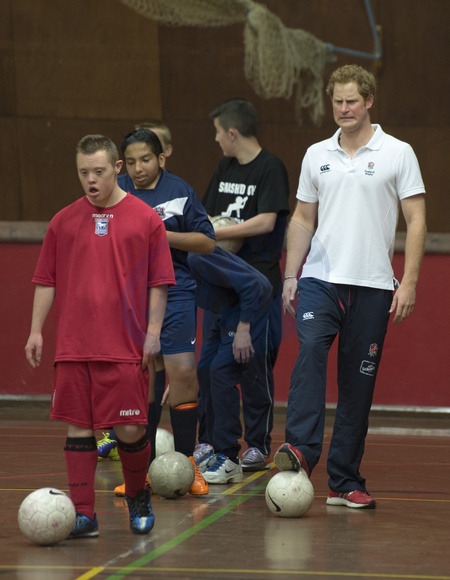 Ksiaze Harry gra z dziecmi w pilke nozna i rugby