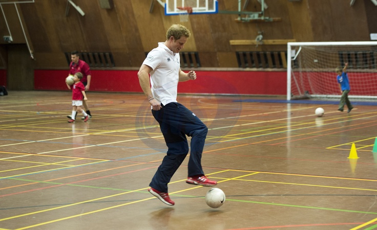 Ksiaze Harry gra z dziecmi w pilke nozna i rugby