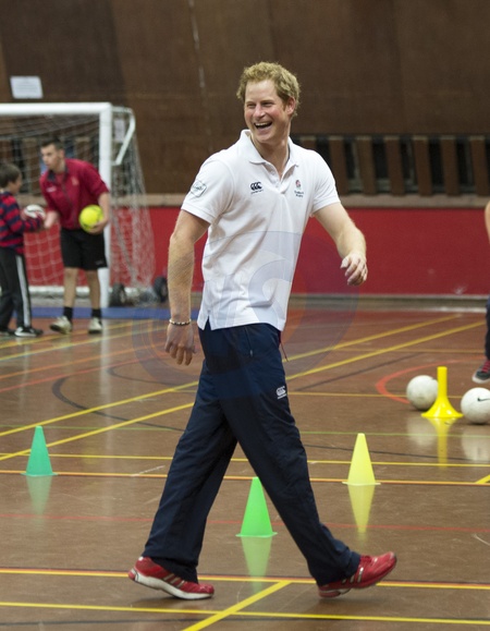Ksiaze Harry gra z dziecmi w pilke nozna i rugby