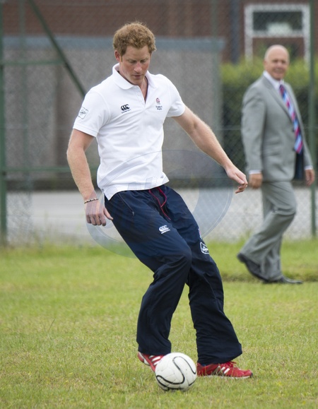 Ksiaze Harry gra z dziecmi w pilke nozna i rugby