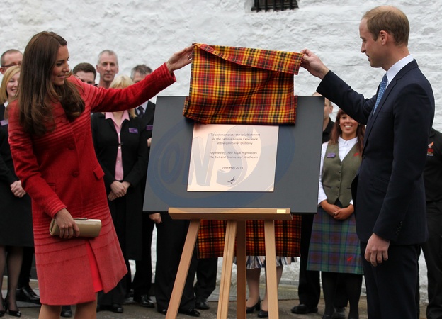 Ksiaze William i Ksiezna Kate degustuja whisky w Crieff, Szkocja