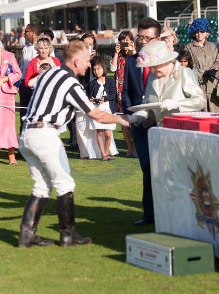 Krolowa Elzbieta wrecza nagrody po meczu Polo, Windsor