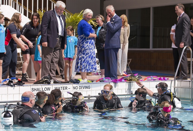 Ksiaze William nurkuje w basenie