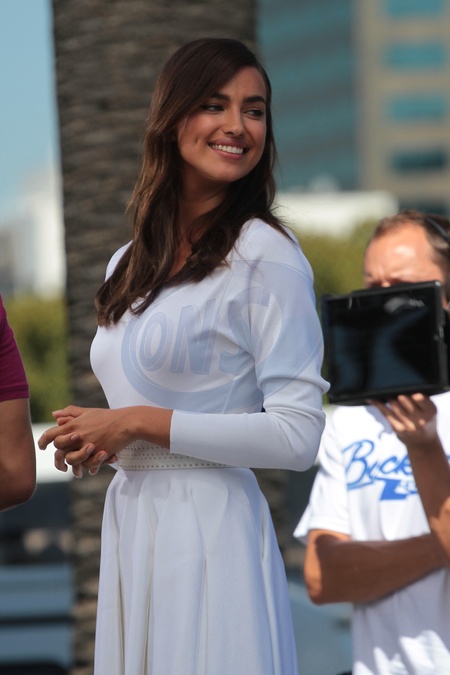 Irina Shayk w bialej sukience