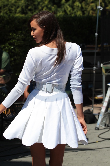 Irina Shayk w bialej sukience