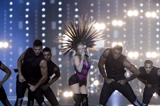 Kylie Minogue w pioropuszu zapiewala na zakonczeniu 20. Commomwealth Games w Glasgow