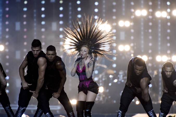 Kylie Minogue w pioropuszu zapiewala na zakonczeniu 20. Commomwealth Games w Glasgow