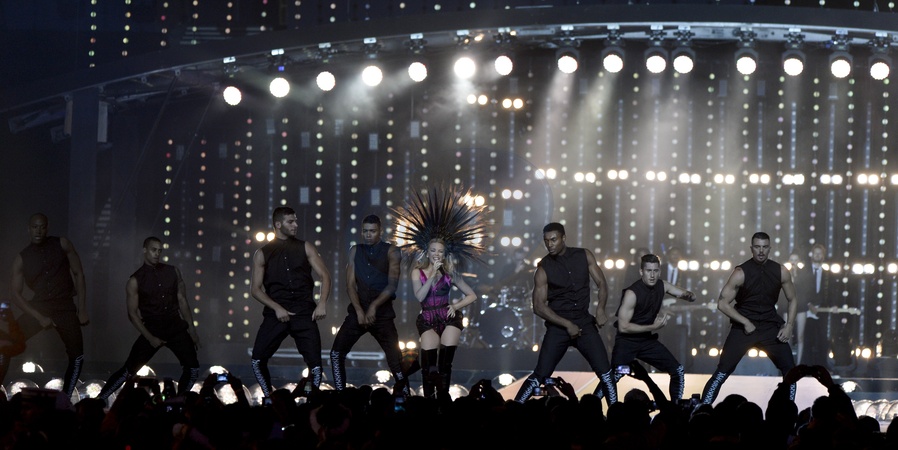 Kylie Minogue w pioropuszu zapiewala na zakonczeniu 20. Commomwealth Games w Glasgow
