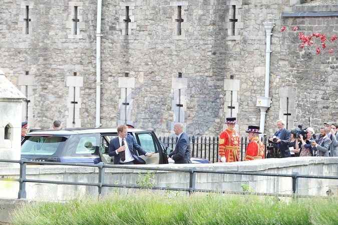 Ksiezna Kate, ksiaze William i ksiaze Harry wsrod ceramicznych makow przy zamku Tower