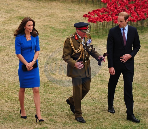 Ksiezna Kate, ksiaze William i ksiaze Harry wsrod ceramicznych makow przy zamku Tower