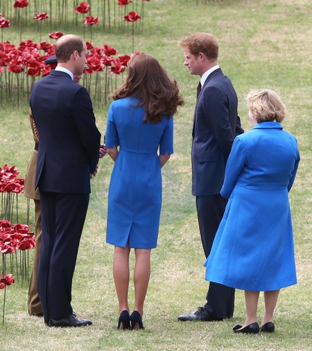 Ksiezna Kate, ksiaze William i ksiaze Harry wsrod ceramicznych makow przy zamku Tower