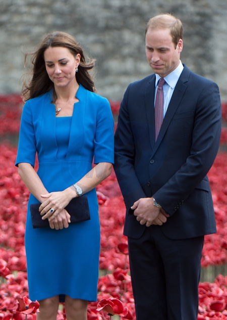 Ksiezna Kate, ksiaze William i ksiaze Harry wsrod ceramicznych makow przy zamku Tower