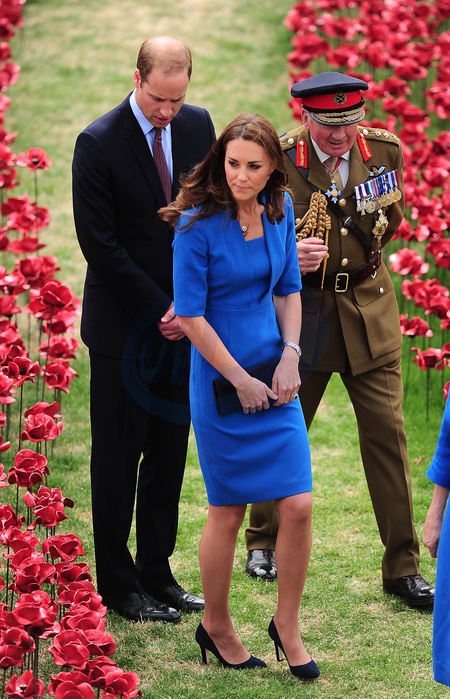 Ksiezna Kate, ksiaze William i ksiaze Harry wsrod ceramicznych makow przy zamku Tower
