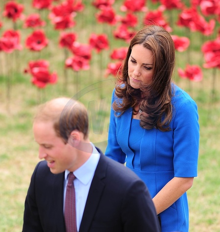 Ksiezna Kate, ksiaze William i ksiaze Harry wsrod ceramicznych makow przy zamku Tower