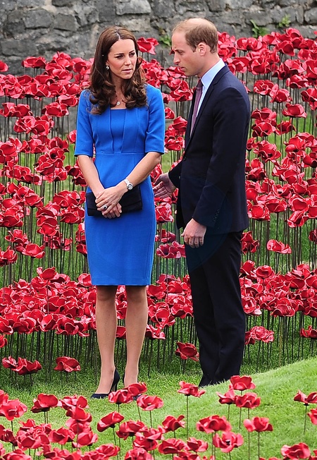 Ksiezna Kate, ksiaze William i ksiaze Harry wsrod ceramicznych makow przy zamku Tower