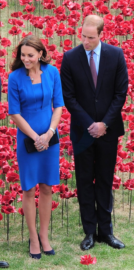 Ksiezna Kate, ksiaze William i ksiaze Harry wsrod ceramicznych makow przy zamku Tower
