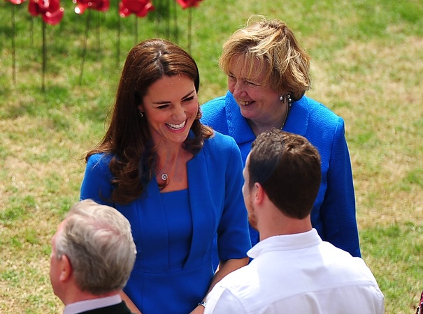 Ksiezna Kate, ksiaze William i ksiaze Harry wsrod ceramicznych makow przy zamku Tower