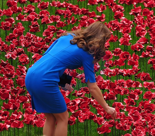 Ksiezna Kate, ksiaze William i ksiaze Harry wsrod ceramicznych makow przy zamku Tower