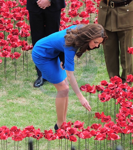 Ksiezna Kate, ksiaze William i ksiaze Harry wsrod ceramicznych makow przy zamku Tower