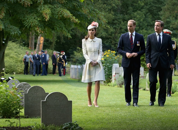 Ksiezna Kate, ksiaze William i ksiaze Harry zlozyli kwiaty poleglym zolnierzom na Cmentarzu Wojskowym pod Mons, Belgia