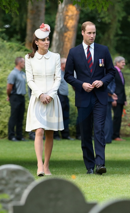 Ksiezna Kate, ksiaze William i ksiaze Harry zlozyli kwiaty poleglym zolnierzom na Cmentarzu Wojskowym pod Mons, Belgia