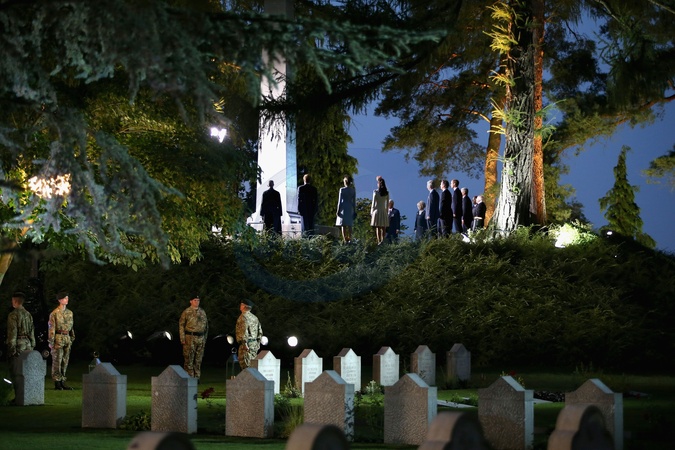 Ksiezna Kate, ksiaze William i ksiaze Harry zlozyli kwiaty poleglym zolnierzom na Cmentarzu Wojskowym pod Mons, Belgia