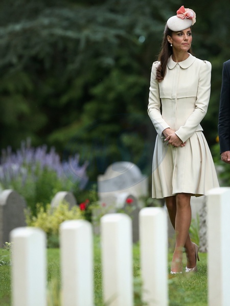 Ksiezna Kate, ksiaze William i ksiaze Harry zlozyli kwiaty poleglym zolnierzom na Cmentarzu Wojskowym pod Mons, Belgia