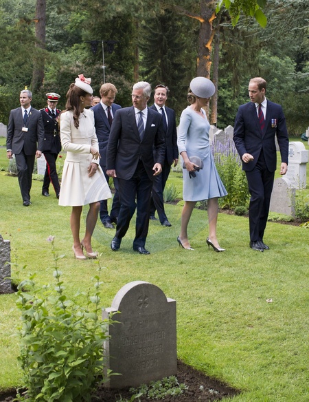 Ksiezna Kate, ksiaze William i ksiaze Harry zlozyli kwiaty poleglym zolnierzom na Cmentarzu Wojskowym pod Mons, Belgia