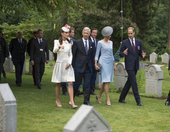 Ksiezna Kate, ksiaze William i ksiaze Harry zlozyli kwiaty poleglym zolnierzom na Cmentarzu Wojskowym pod Mons, Belgia
