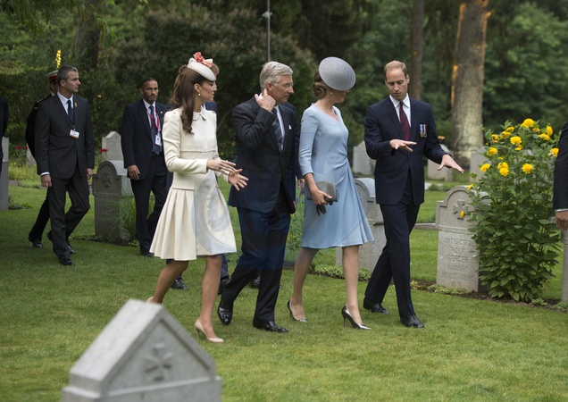 Ksiezna Kate, ksiaze William i ksiaze Harry zlozyli kwiaty poleglym zolnierzom na Cmentarzu Wojskowym pod Mons, Belgia
