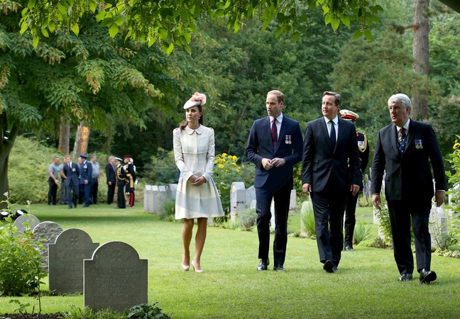 Ksiezna Kate, ksiaze William i ksiaze Harry zlozyli kwiaty poleglym zolnierzom na Cmentarzu Wojskowym pod Mons, Belgia