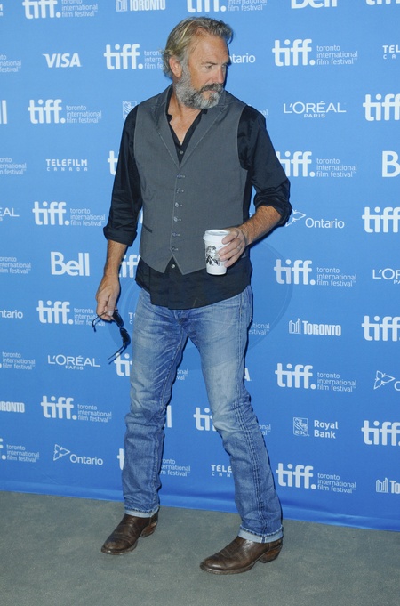 Brodaty Kevin Costner na photocallu Black and White, Festiwal Filmowy w Toronto