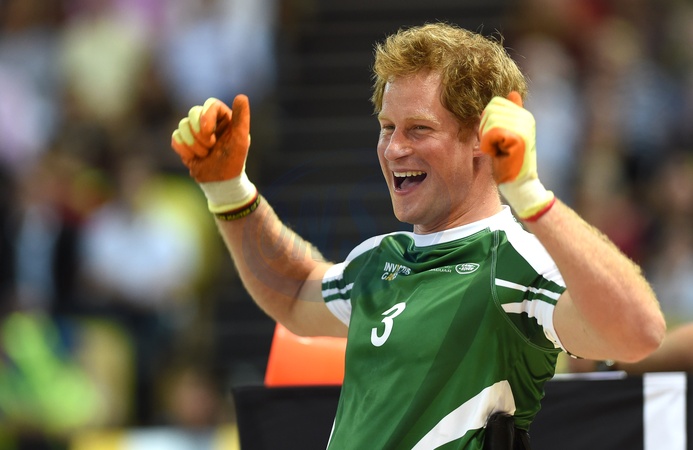 Ksiaze Harry na wozku inwalidzkim podczas gry - Invictus Games 2014