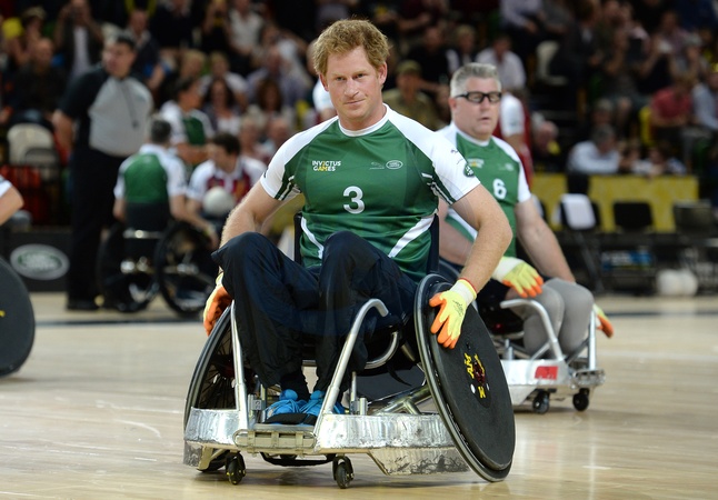 Ksiaze Harry na wozku inwalidzkim podczas gry - Invictus Games 2014