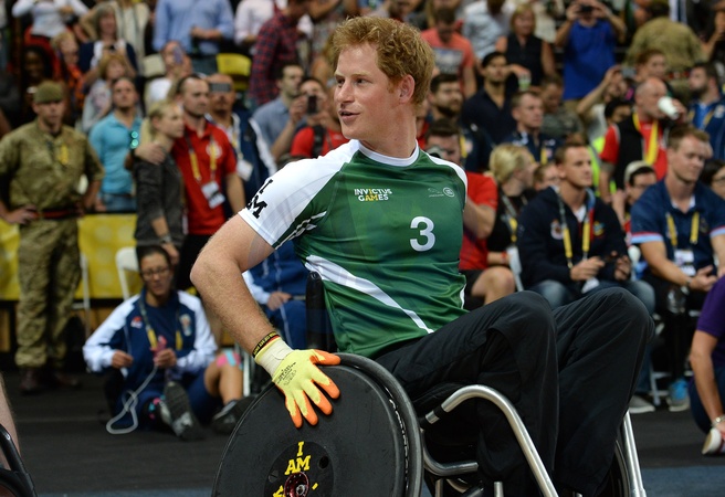 Ksiaze Harry na wozku inwalidzkim podczas gry - Invictus Games 2014